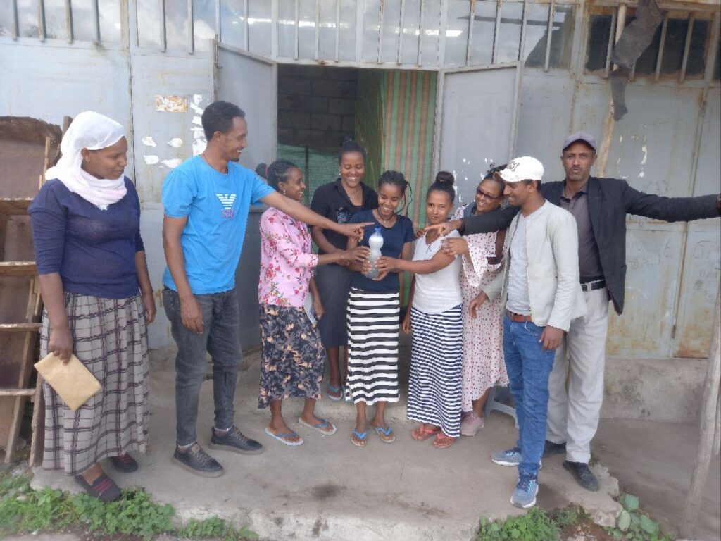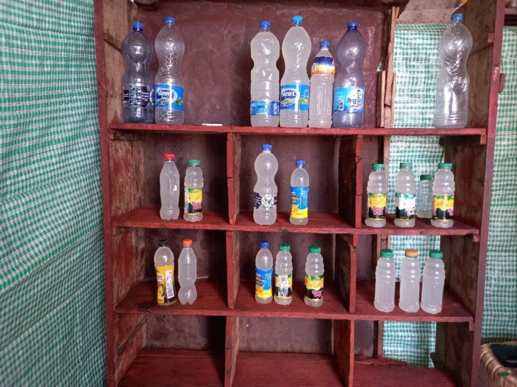 LIQUID SOAP TEST PRODUCTION USING LOCALLY AVAILABLE MATERIALS. THESE ARE PREPARED BY TRAINEES.
